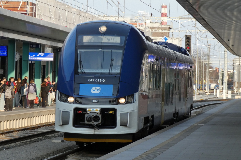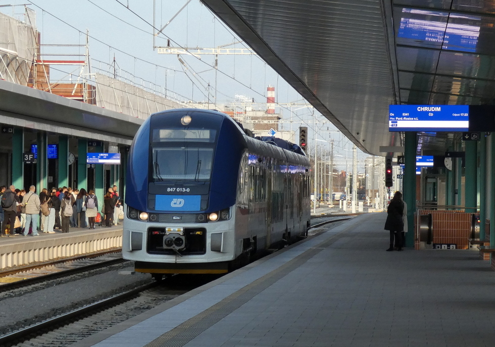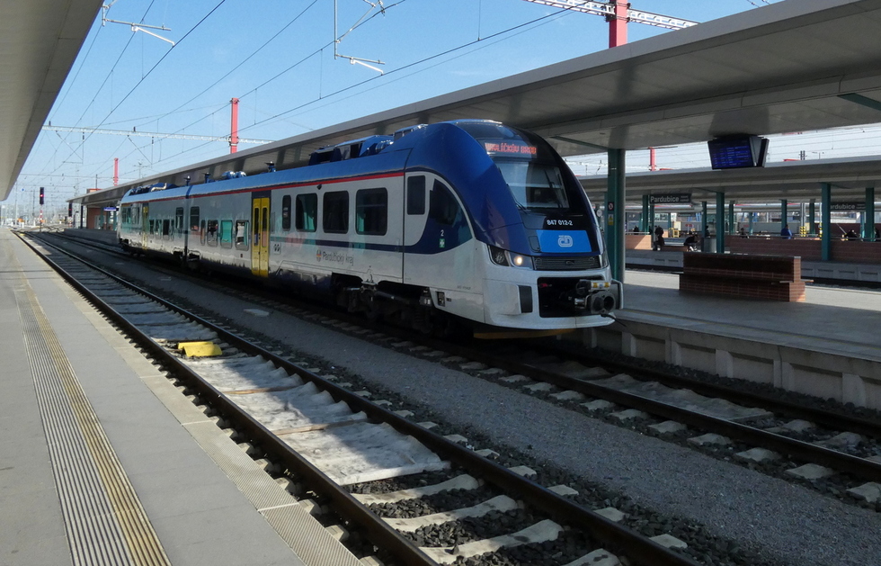 847-013 jako pociąg relacji Pardubice hl.n. – Chrudim, 22.03.2025r. Pardubice hl.n.