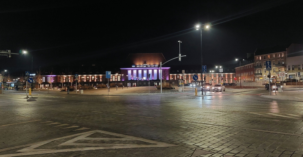 Dworzec wieczorową porą, 02.02.2025r. Gliwice.