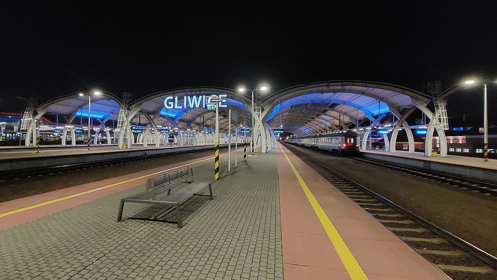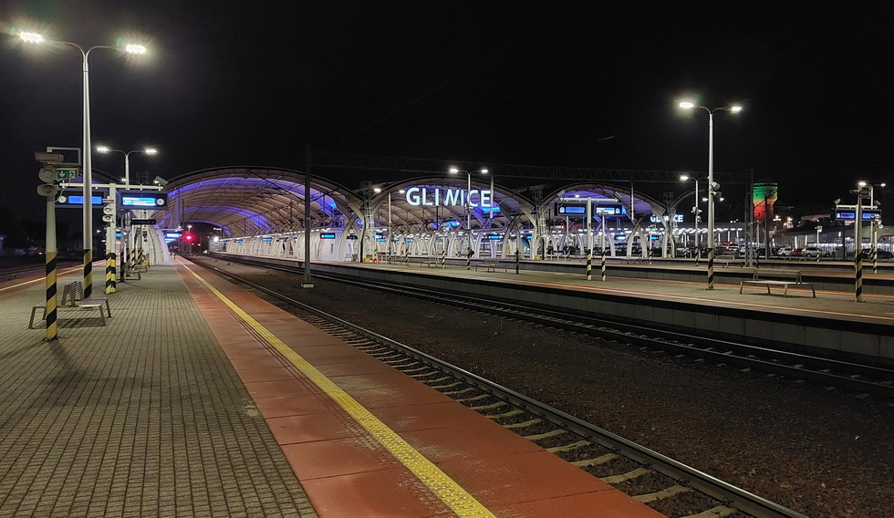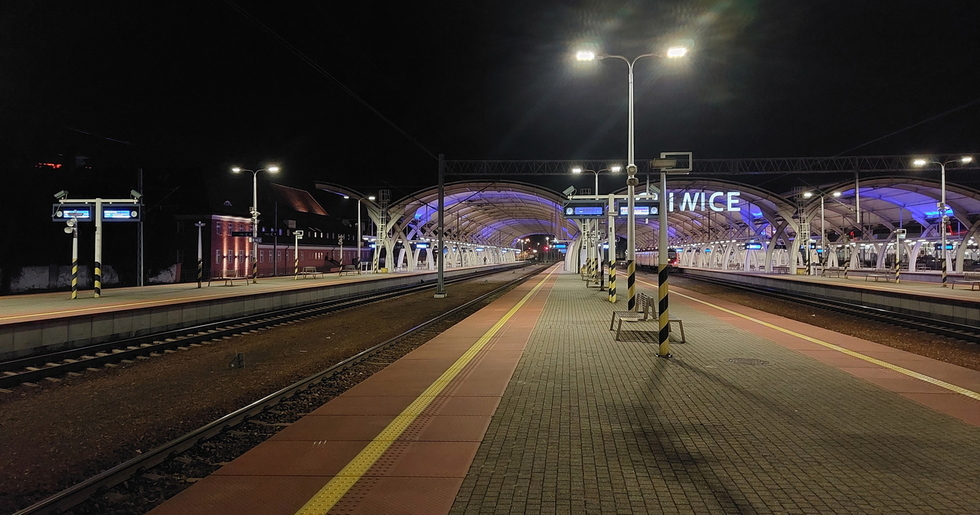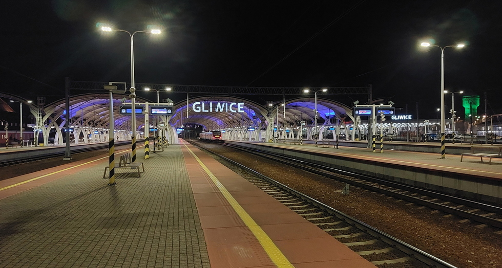 Perony dworca wieczorową porą, 01.03.2025r. Gliwice.