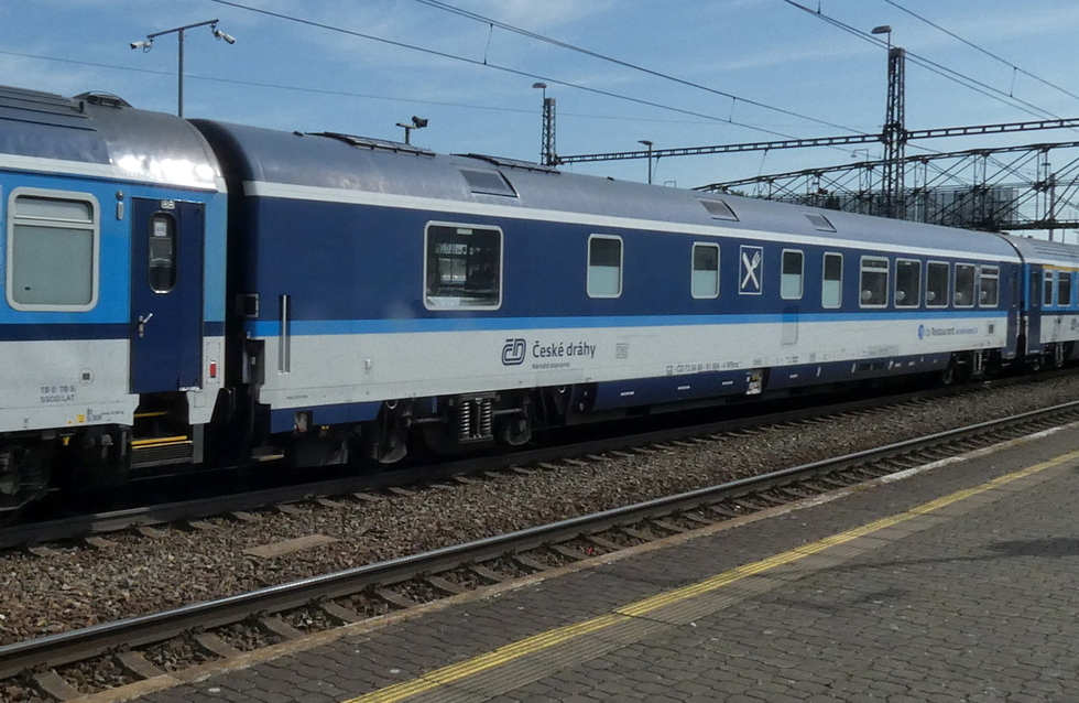 73 54 88-91 004-4 WRmz.815 wagon restauracyjny w składzie pociągu EC Ostravan relacji Praha hl.n. – Žilina, 22.06.2025r. Bohumin.