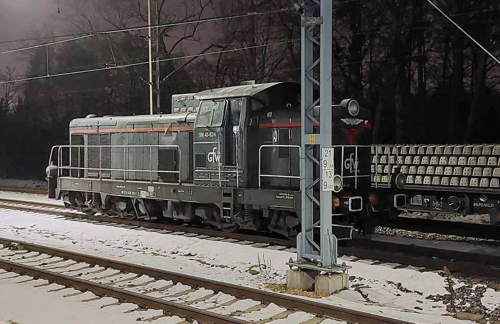 SM42-824 z składem węglarek, 19.01.2025r. Żory.