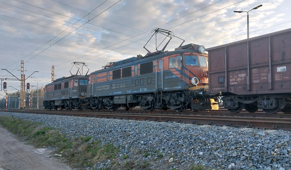 EU07-499 + 062 w barwach firny Kolprem ze składem weglarek, 26.06.2023r. Żory.