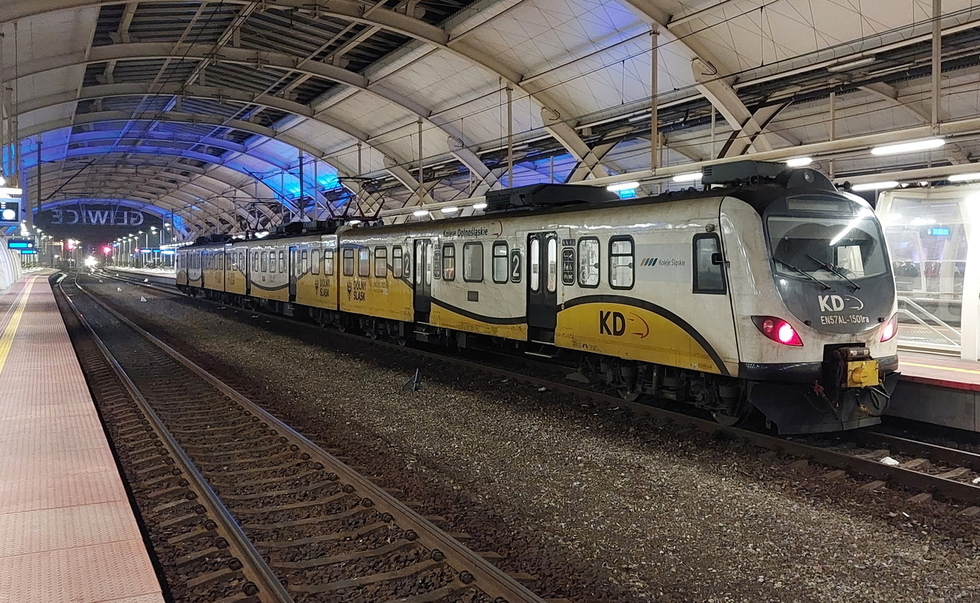 EN57AKŚ-1533 KŚ jako pociąg relacji Gliwice – Katowice, 16.02.2022r. Gliwice.