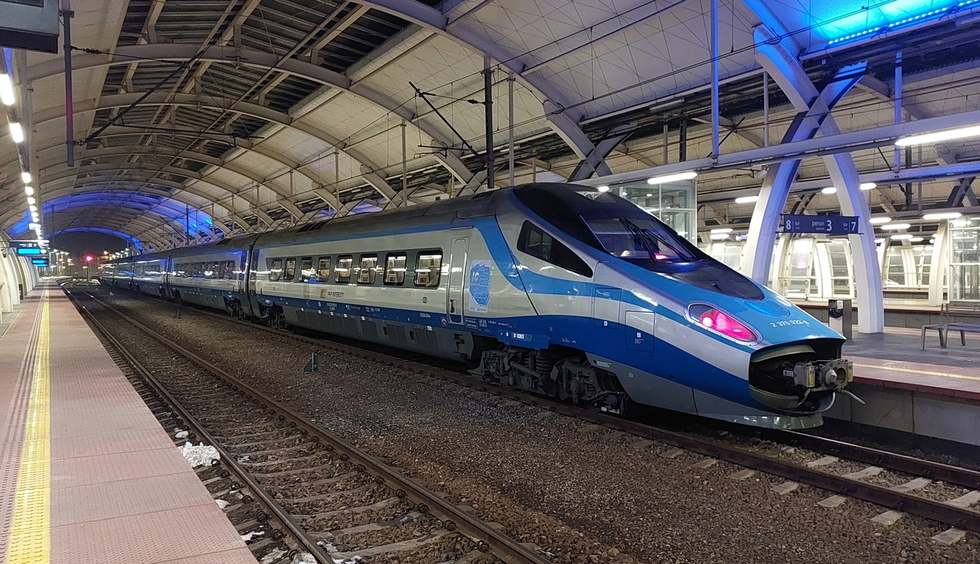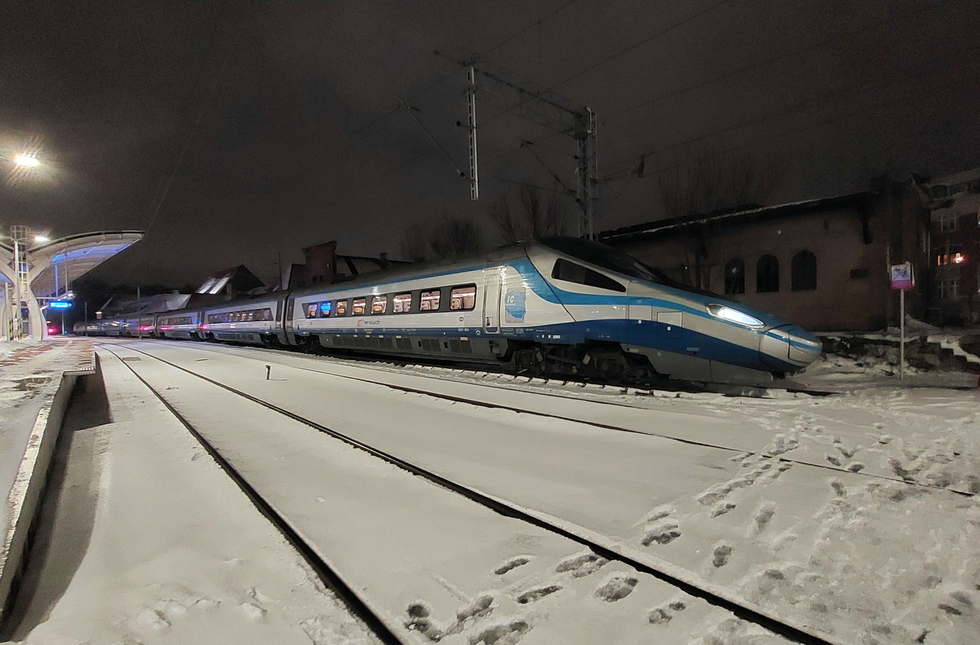 ED250-004 skończył bieg jako pociąg EIP relacji Gdynia Główna – Gliwice, 18.01.2025r. Gliwice.