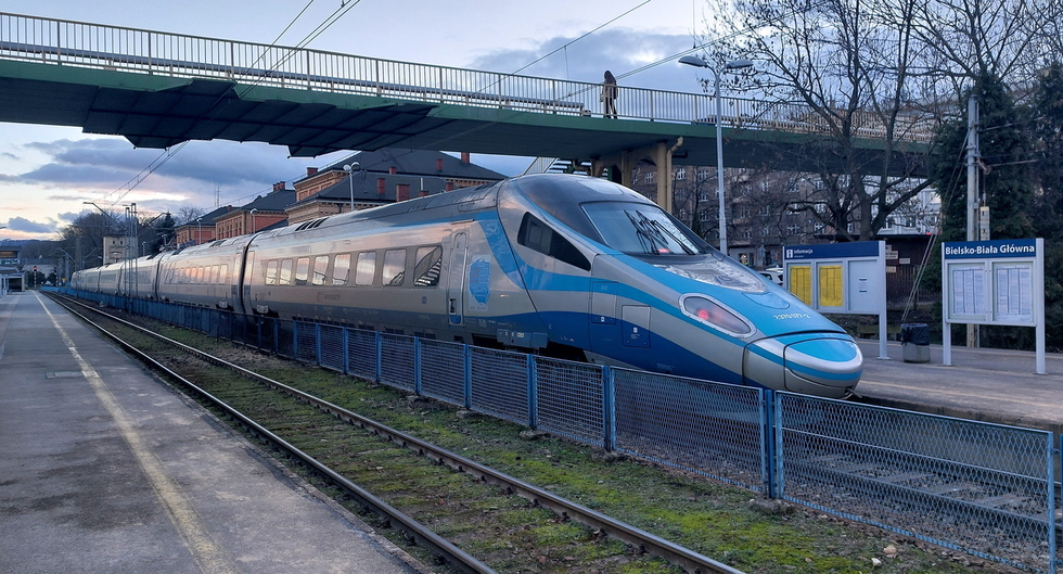 ED250-004 jako pociąg EIP relacji Bielsko Biała Główna – Gdynia Główna, 31.01.2025r. Bielsko Biała Główna.