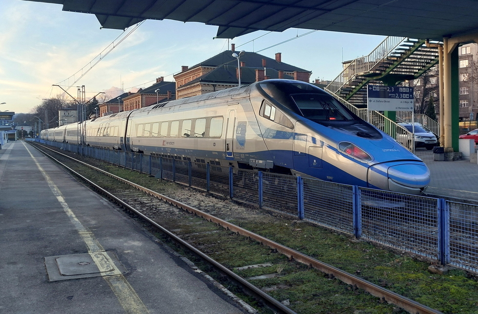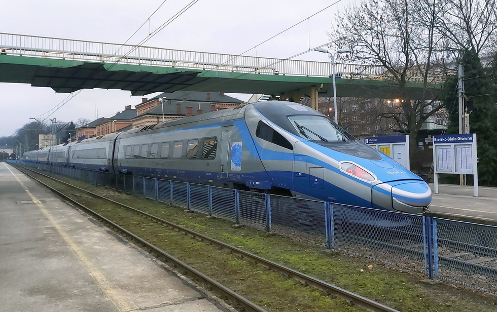 ED250-014 jako pociąg EIP relacji Bielsko Biała Główna – Gdynia Główna, 29.01.2025r. Bielsko Biała Główna.