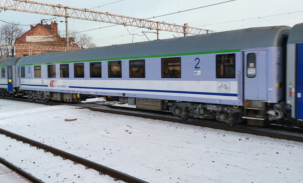 50 51 84-78 017-7 B9nopuvz wagon pasażeski 2 klasy typu 111Arow w składzie pociągu IC Malczewski relacji Kraków Główny – Kołobrzeg, 05.01.2025r. Gliwice.