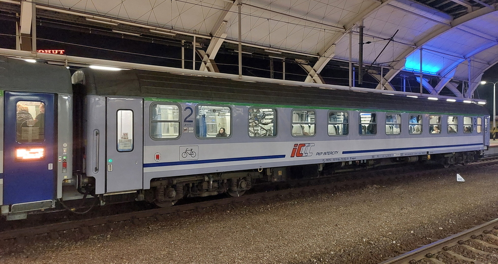 Wagon pasażerski 2 klasy typu 111Arow 50 51 84-78 027-5 B7nopuvz w składzie IC Malczewski relacji Przemyśl Główny – Słupsk, 15.10.2017r. Wrocław Główny.