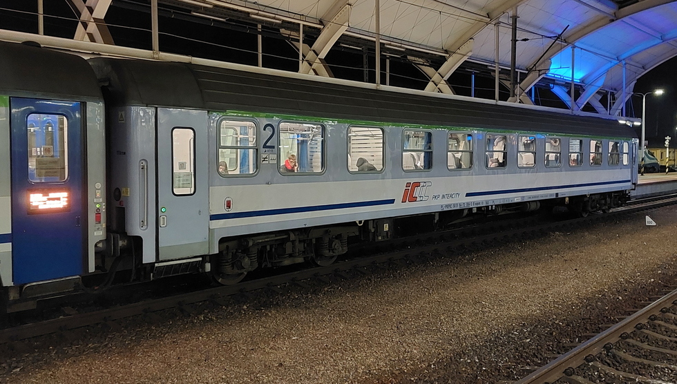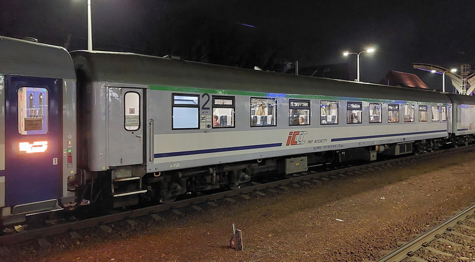 50 51 84-70 004-3 B7nopuvz wagon pasażeski 2 klasy typu 111Arow w składzie pociągu IC Malczewski relacji Kołobrzeg – Kraków Główny, 07.02.2025r. Gliwice.