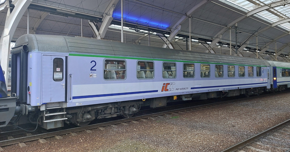 50 51 84-70 004-3 B7nopuvz wagon pasażerski 2 klasy typu 111Arow w składzie pociągu IC Malczewski relacji Kraków Główny – Kołobrzeg, 01.09.2024r. Gliwice.