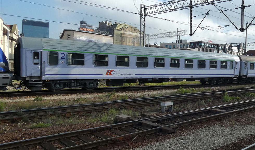 Wagon pasażerski typu 111A 50 51 20-70 875-2 serii B10ou w składzie TLK Sztygar, 19.09.2016r. Katowice.