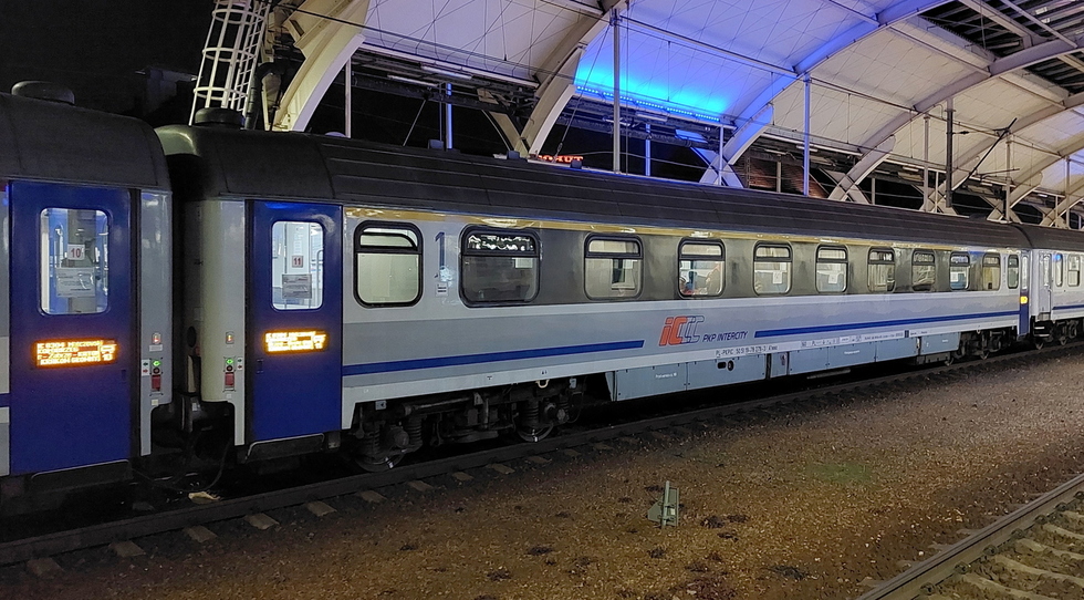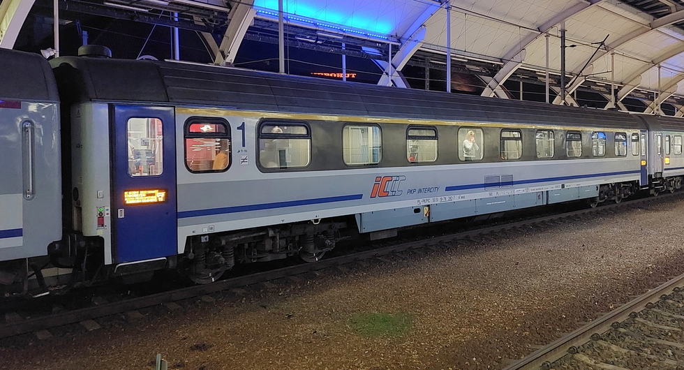 Wagon pasażerski 1 klasy typu 140A 50 51 19-70 704-8 A9nouz w składzie IC Mehoffer relacji Jelenia Góra – Przemyśl Główny, 15.10.2017r. Wrocław Główny.
