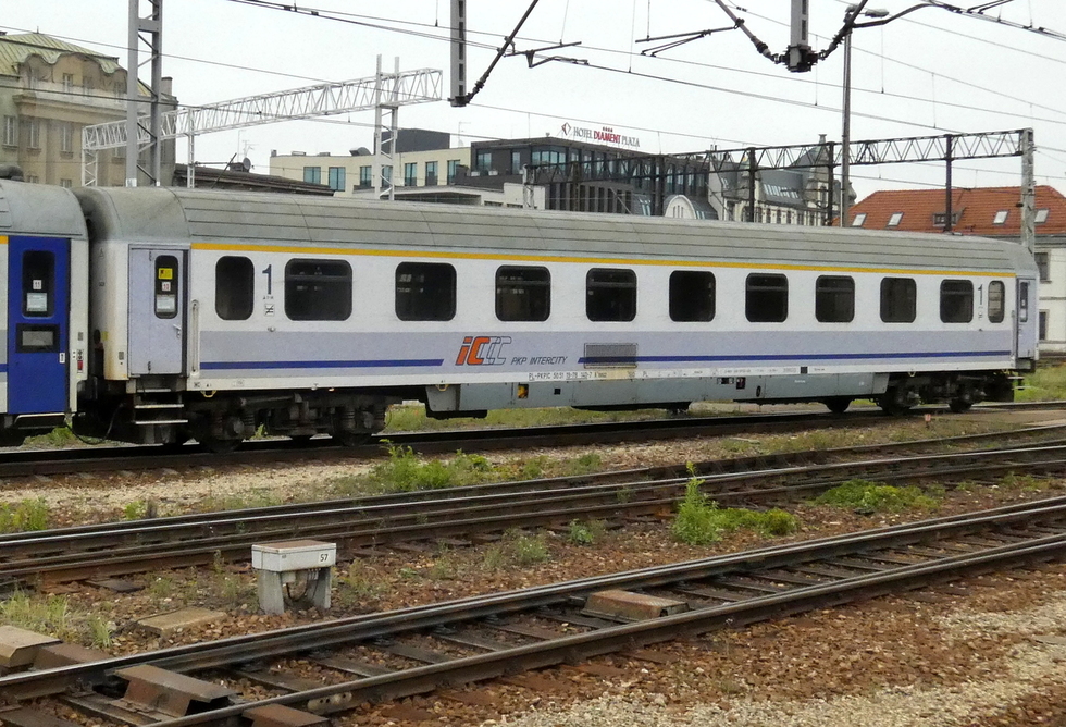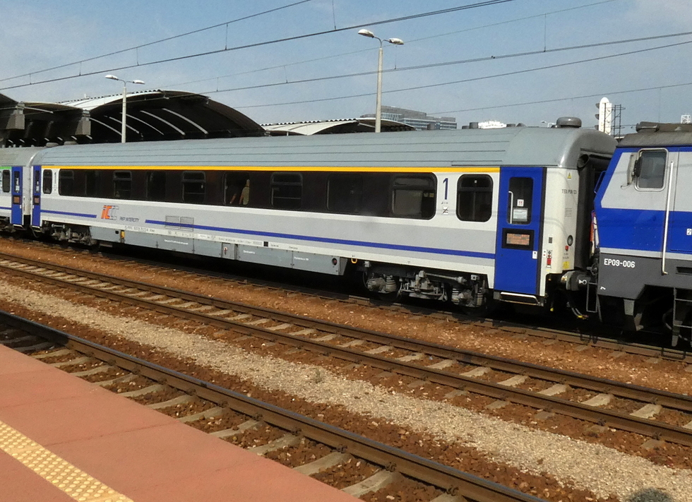 Wagon pasażerski 1 klasy typu 140A 50 51 19-78 268-6 A9nouz w składzie IC Chełmoński relacji Przemyśl Główny – Szczecin Główny, 20.06.2017r. Kraków Główny.