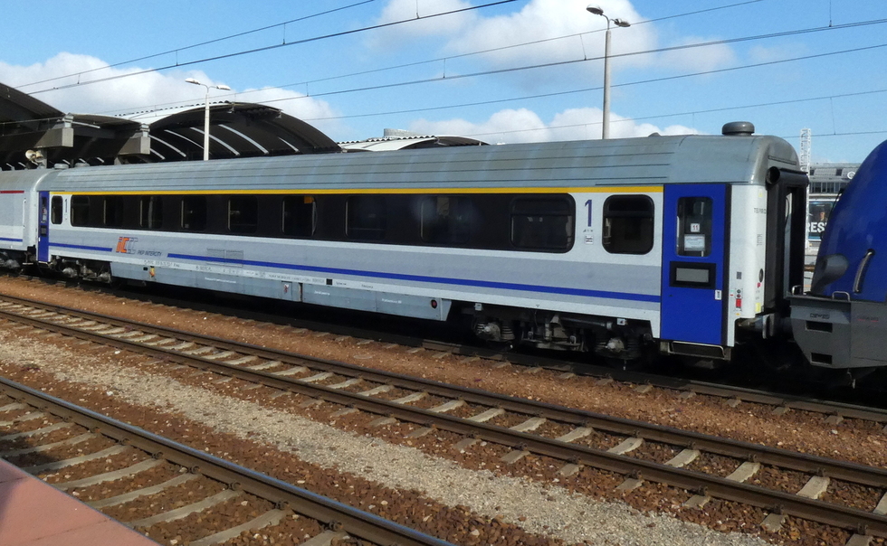 Wagon pasażerski 1 klasy typu 140A 50 51 19-78 270-2 A9nouz w składzie IC Malczewski relacji Przemyśl Główny – Kołobrzeg, 15.10.2017r. Wrocław Główny.