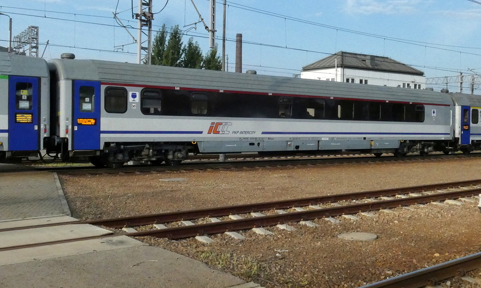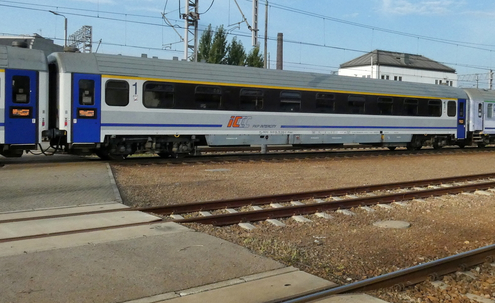 Wagon osobowy 1 klasy typu 140A 50 51 19-78 288-4 A9nouz w składzie IC Świętopełek, 04.09.2016r. Gliwice.