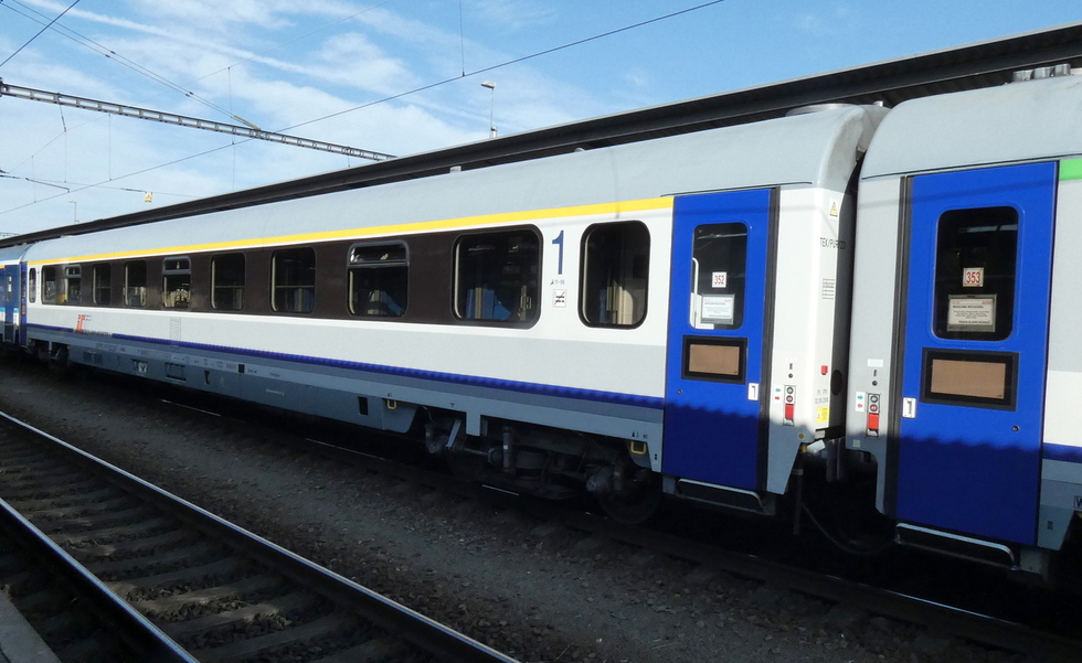 61 51 19-70 230-1 A9mnouz wagon pasażerski 1 klasy typu Bautzen91 w składzie EIC Sobieski relacji Gdynia Główna – Wien Hbf. 09.06.2019r. Bohumin.