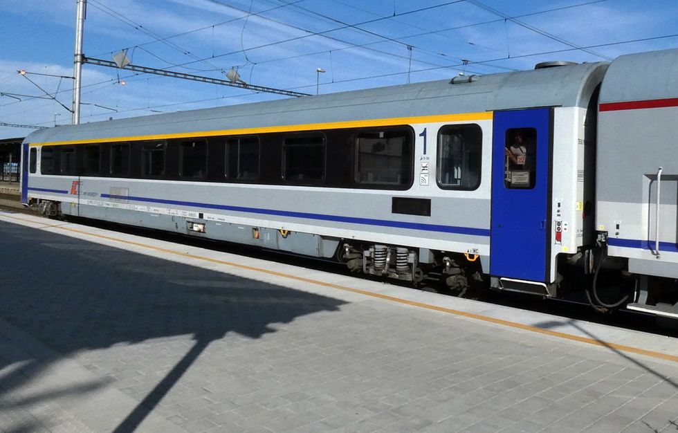 61 51 19-70 254-1 A9mnouz wagon pasażerski 1 klasy typu 139A w składzie IC Moravia relacji Wien Hbf – Katowice, 05.07.2018r. Katowice.
