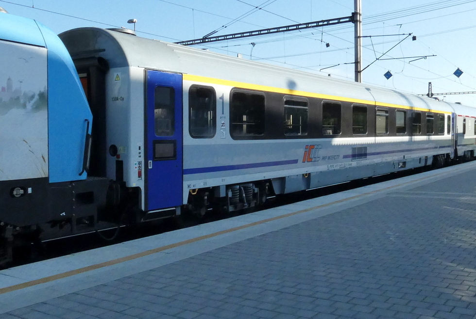 61 51 19-70 249-1 A9mnouz wagon pasażerski 1 klasy typu 139A w składzie IC Porta Moravica relacji Warszawa Wschodnia – Praha hl.n, 20.06.2019r. Bohumin.