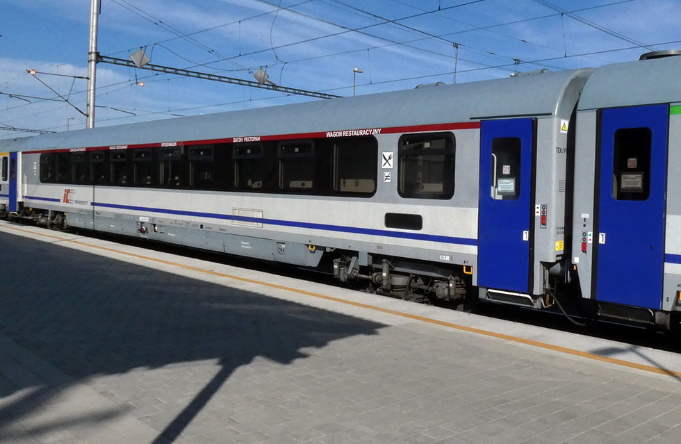 Wagon restauracyjny Bautzen89 61 51 88-70 193-7 WRmnouz w składzie EIC Modrzejewska relacji Kraków Główny – Warszawa Wschodnia, 20.06.2017r. Kraków Główny.