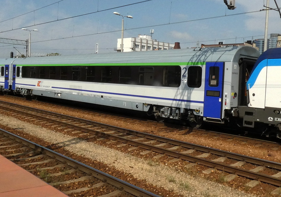 Wagon pasażerski 2 klasy typu 144A 61 51 21-70 172-1 B11mnouz w skladzie EIC Polonia relacji Warszawa Wschodnia – Wien Hbf, 23.05.2018r. Katowice.