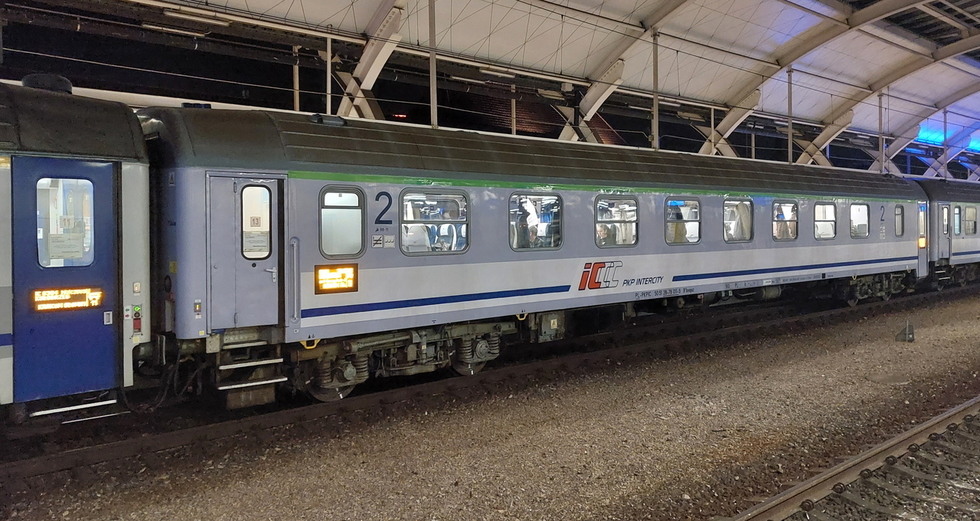 50 51 28-78 011-9 B8bnopuz wagon pasażeski 2 klasy typu 111Ainw w składzie pociągu IC Malczewski relacji Kołobrzeg – Kraków Główny, 02.02.2025r. Gliwice.