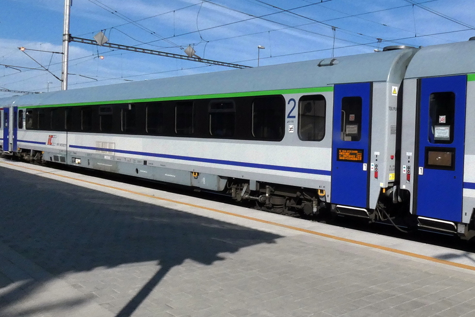 Wagon pasażerski 2 klasy typu Görlitz90 61 51 21-70 035-5 B11mnouz w składzie EIC Modrzejewska relacji Kraków Główny – Warszawa Wschodnia, 20.06.2017r. Kraków Główny.