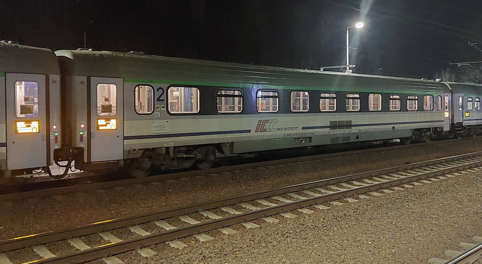 50 51 20-78 811-0 B10nouz wagon pasażerski 2 klasy typu 174A w składzie pociągu IC Malczewski relacji Kołobrzeg – Kraków Główny, 16.11.2024r. Gliwice.