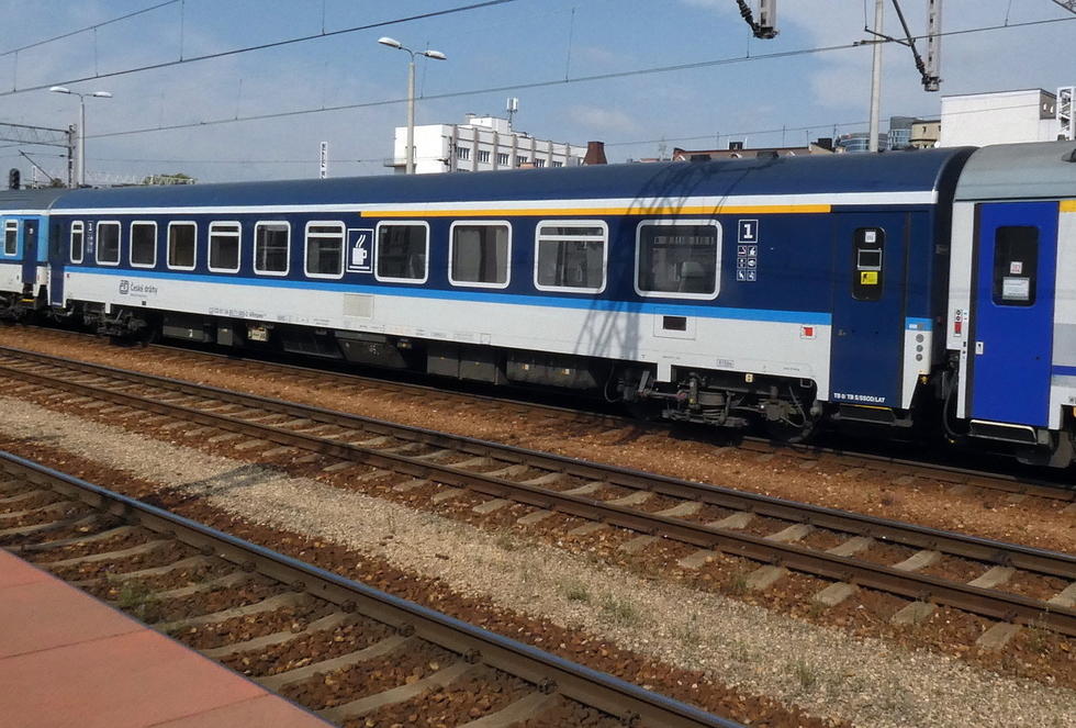 61 54 85-71 002-9 ARmpee.832 wagon pasażeski 1 klasy z przedziałem barowym budowy zakładów Bautzen składzie IC Cracovia relacji Praha hl.n, – Kraków Główny. 09.06.2019r. Bohumin.