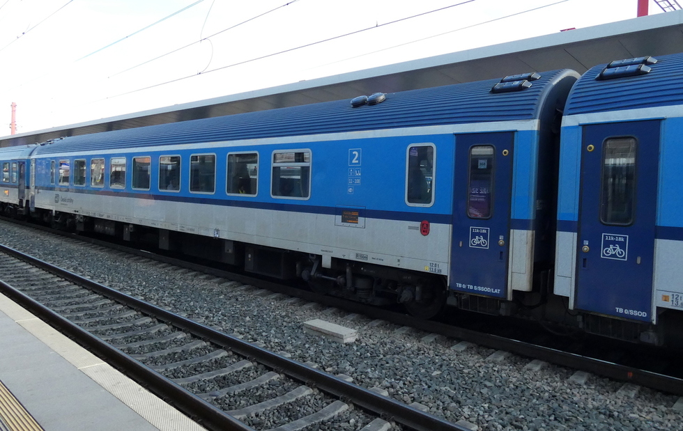 61 54 20-71 060-5 Bdpee.231 wagon pasażerski 2 klasy w składzie pociągu w kierunku Pragi. 15.08.2021r. Brno hl.n.