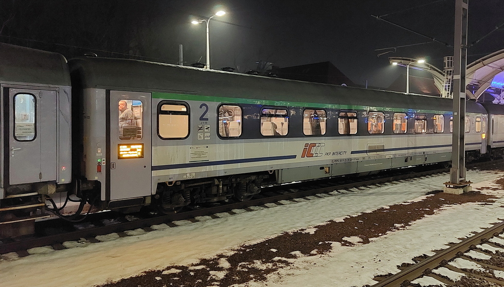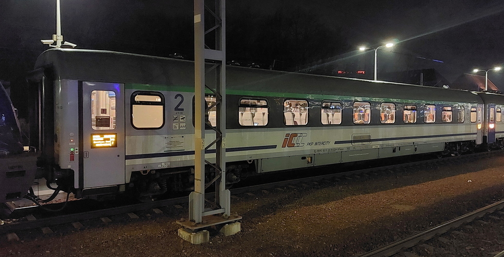 50 51 29-78 136-3 B9nopuz wagon pasażerski 2 klasy typu 111A-20 w składzie pociągu IC Halny relacji Zakopane – Bydgoszcz Główna, 28.02.2022r. Bielsko Biała Główna.