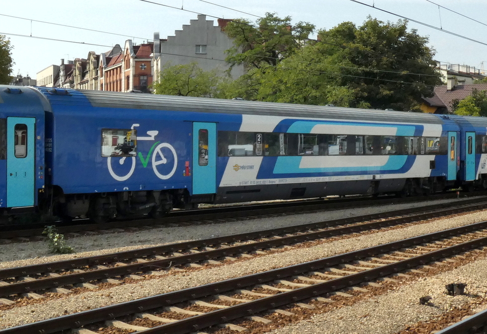 61 55 84-91 402-7 Bbdpmz wagon pasażerski 2 klasy w składzie pociągu EC Hungaria relacji Praha hl.n – Budapest Nyugati. 15.08.2021r. Brno hl.n.