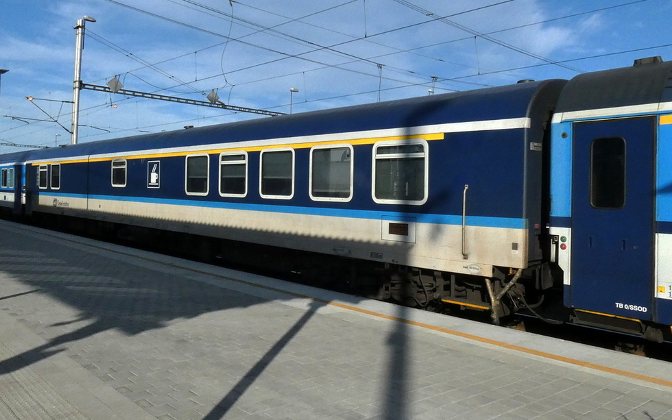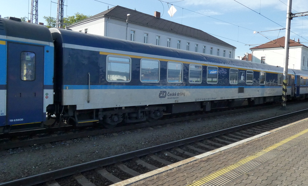 61 54 85-71 103-5 ARmpee.829 wagon pasażerski 1 klasy z przedziałem barowym w składzie pociągu Valašský expres relacji Praha hl.n. – Púchov, 23.07.2023r. Olomouc hl.n.