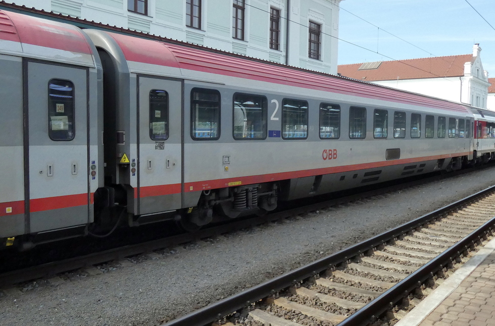 73 81 21-91 189-0 Bmz73 wagon pasażerski 2 klasy budowy zakładów SGP Graz w składzie EC Porta Moravica relacji Przemyśl Główny – Graz Hbf, 15.08.2020r. Bohumin.