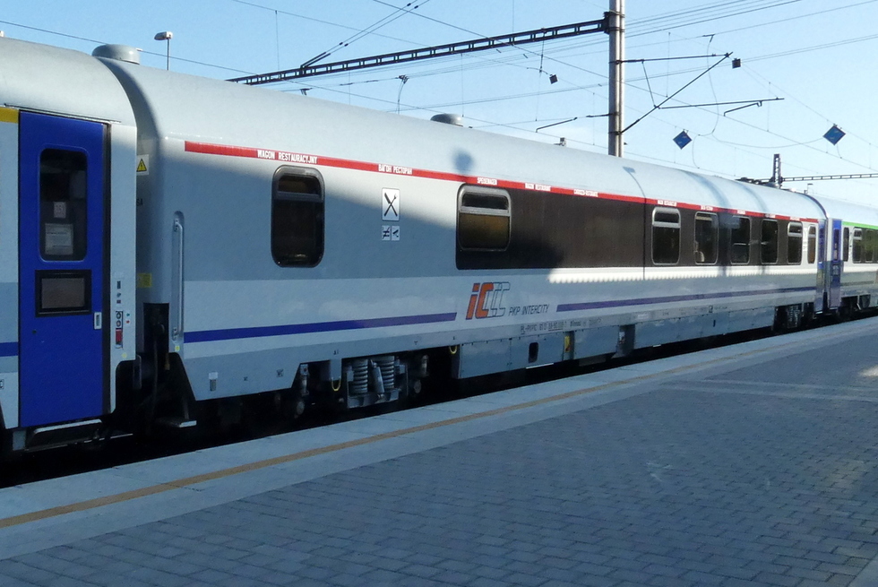 Wagon restauracyjny typu 406A 61 51 88-90 008-3 WRmnouz w skladzie EIC Comenius relacji Ostrava Svinov – Warszawa Wschodnia, 24.02.2018r. Katowice.
