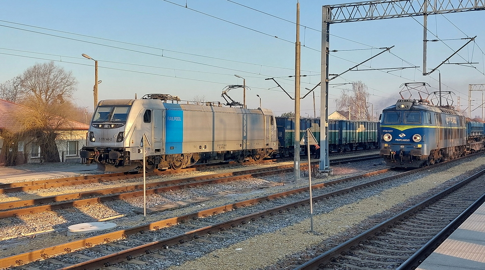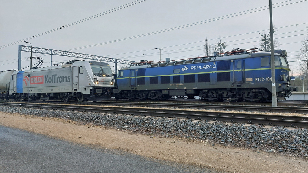 594-024 z składem cystern i ET22-1048 z składem węglarek, 02.04.2025r. Żory.