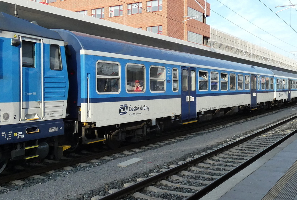 50 54 22-44 190-5 Bdmtee.275 wagon pasażerski 2 klasy w składzie pociągu relacji Žďár nad Sázavou – Hustopeče u Brna, 31.08.2022r. Brno hl.n.