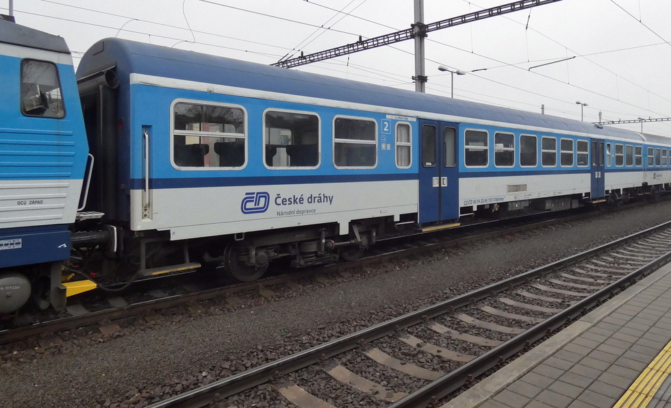 50 54 22-44 187-1 Bdmtee.275 wagon pasażerski 2 klasy w składzie pociągu relacji Přerov – Břeclav, 26.02.2023r. Přerov.