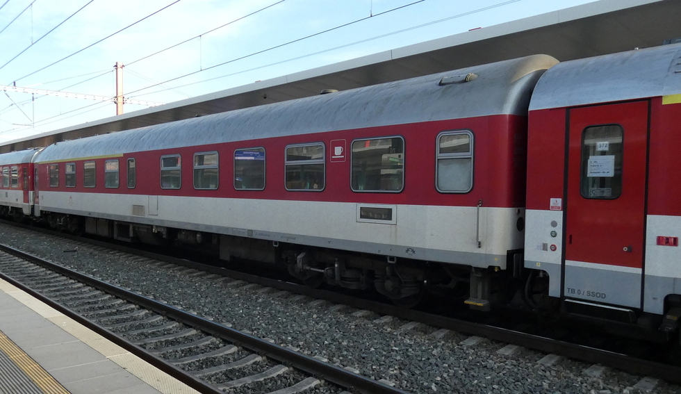 61 56 85-70 003-6 ARpeer wagon pasażerski 1 klasy z przedziałem barowym w składzie pociągu Metropolitan relacji Praha hl.n. – Budapest-Nyugati, 25.08.2021r. Břeclav.
