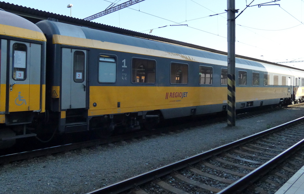 61 80 19-91 501-5 Avmz.109.5 wagon pasażerski 2 klasy w składzie pociągu Regio Jet relacji Praha hl.n. – Košice, 28.04.2024r. Olomouc hl.n.