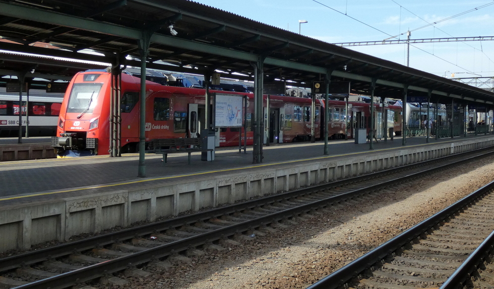 640-110 jako pociąg relacji Hradec Králové hl.n. – Pardubice centrum i 650-230 oczekuje na zatrudnienie, 22.03.2025r. Hradec Králové hl.n.