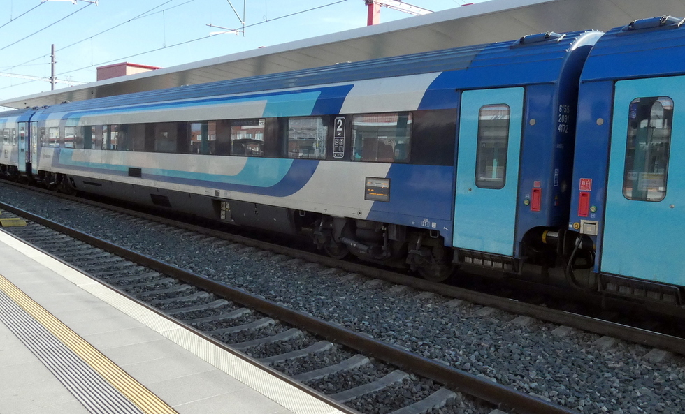 61 55 20-91 417-2 Bpmz wagon pasażerski 2 klasy w składzie pociągu EC Hungaria relacji Děčín hl.n. – Budapest-Nyugati pu, 22.03.2025r. Pardubice hl.n.