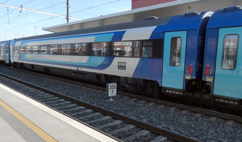 61 55 20-91 415-6 Bpmz wagon pasażerski 2 klasy w składzie pociągu EC Hungaria relacji Děčín hl.n. – Budapest-Nyugati pu, 22.03.2025r. Pardubice hl.n.