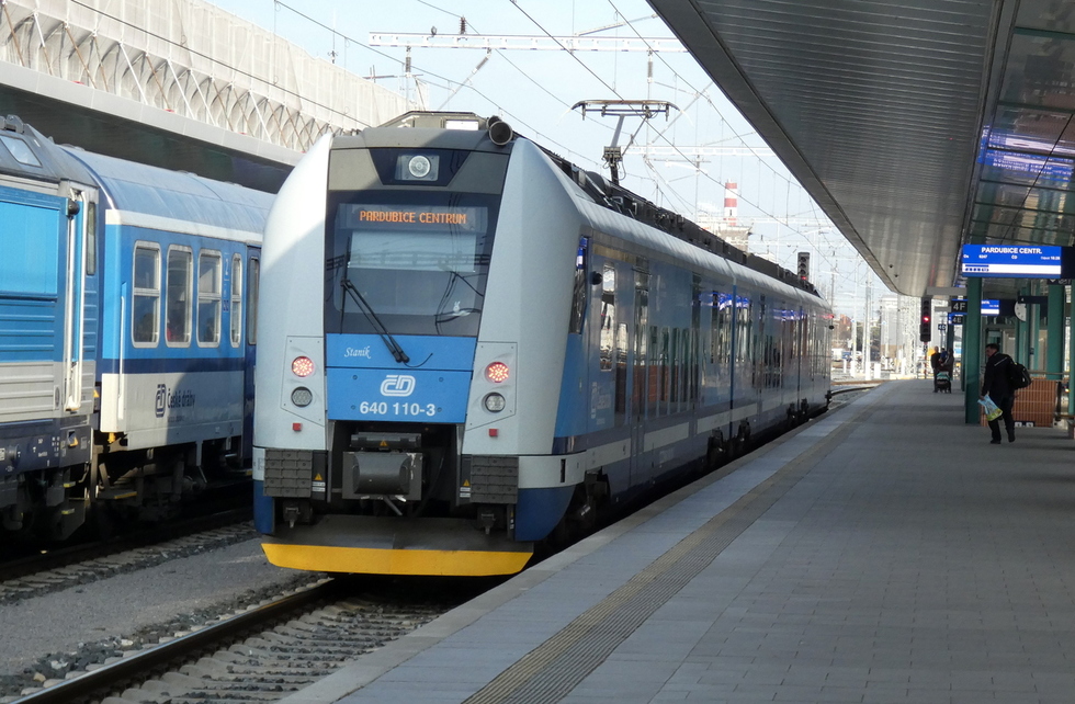 640-110 jako pociąg relacji Hradec Králové hl.n. – Pardubice centrum, 22.03.2025r. Pardubice hl.n.