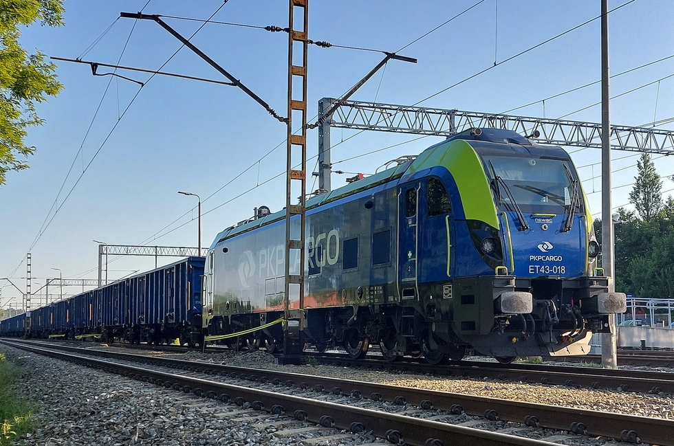 ET43-018 z składem węglarek, 28.05.2025r. Żory.