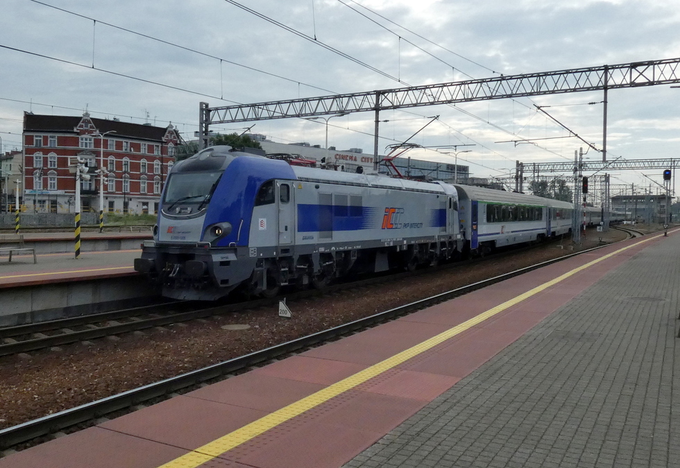 ED161-011 podstawia się jako pociąg IC Daszyński relacji Bielsko Biala Główna – Białystok. 04.07.2025r. Bielsko Biała Główna.