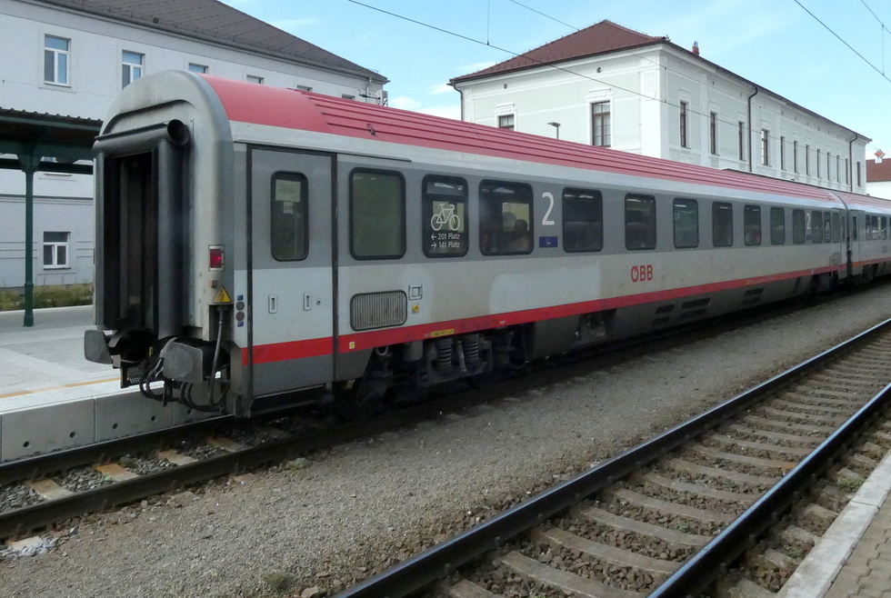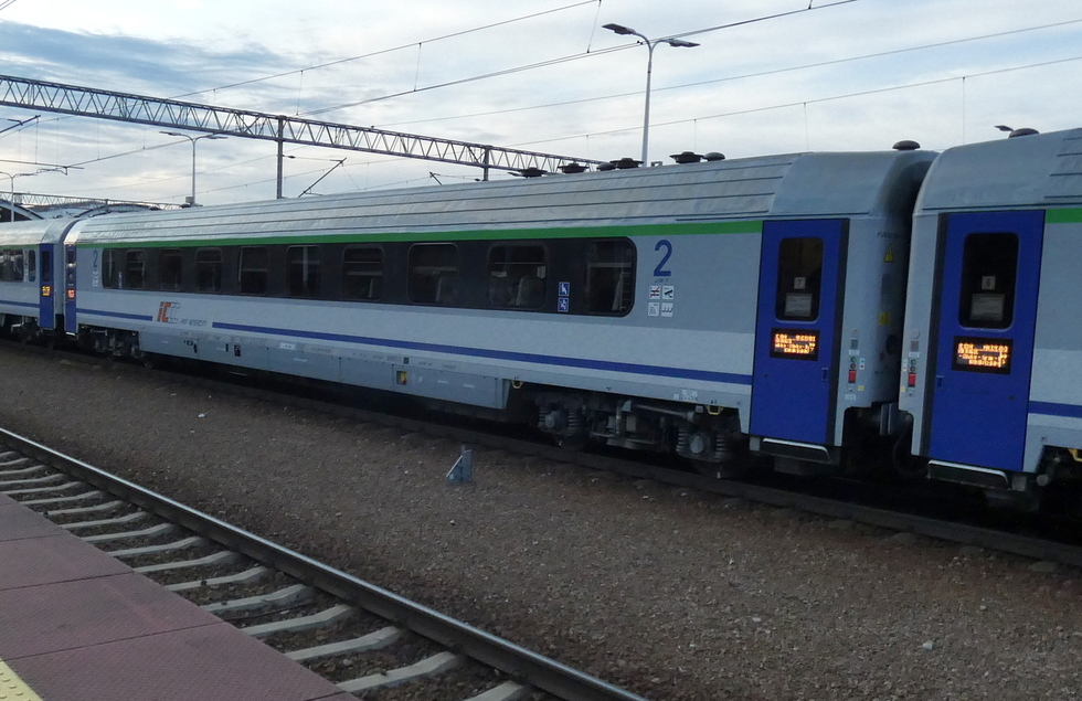 61 85 20-90 319-5 Bpm wagon pasażerski 2 klasy w składzie pociągu EC Porta Moravica relacji Przemyśl Główny – Graz Hbf. 13.07.2025r. Bohumin.