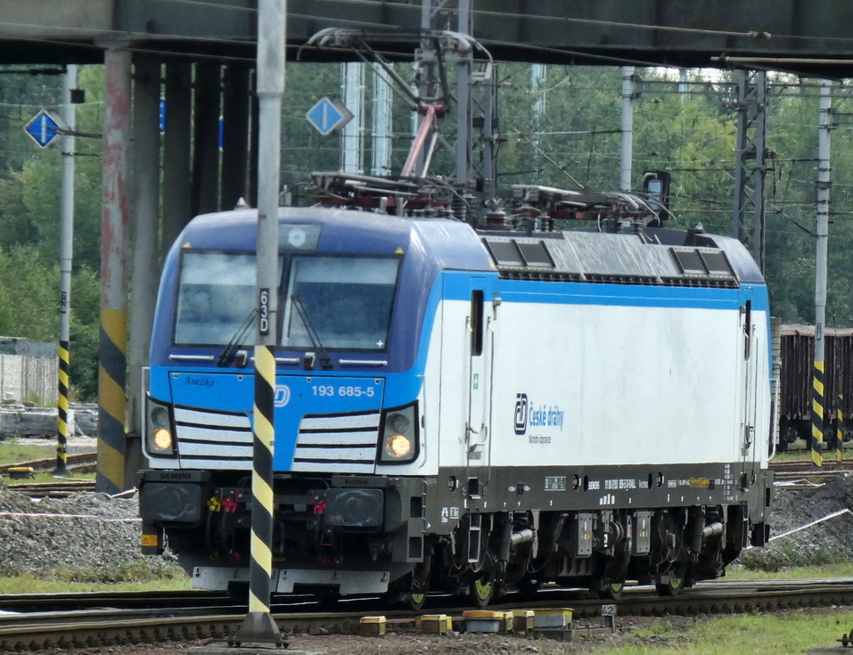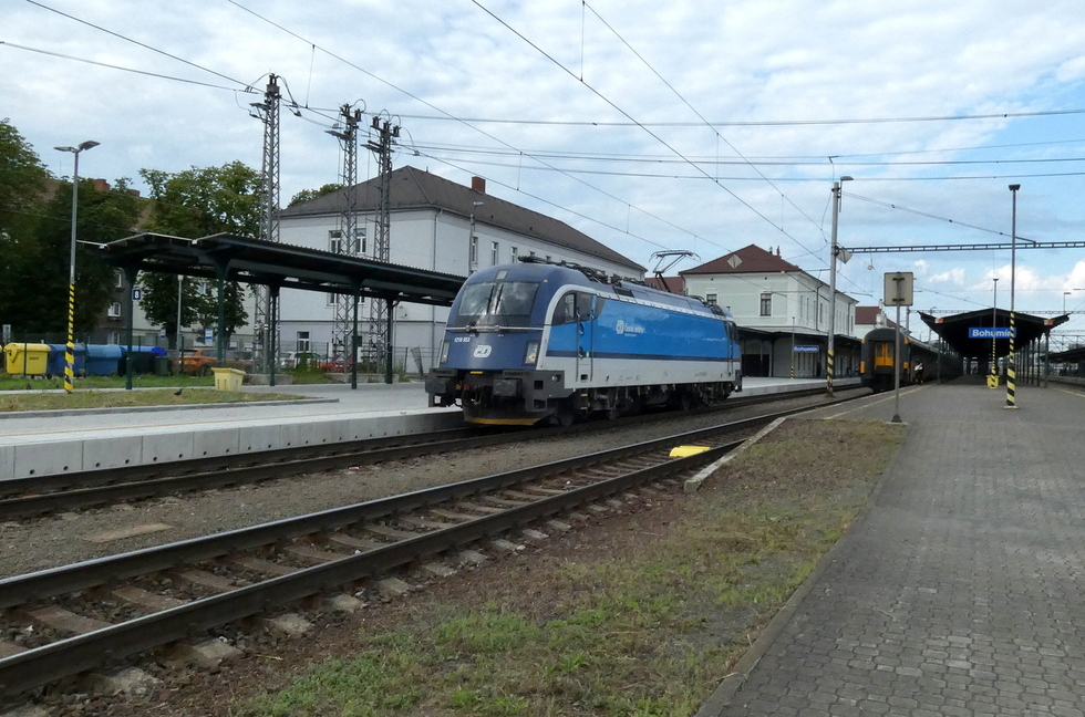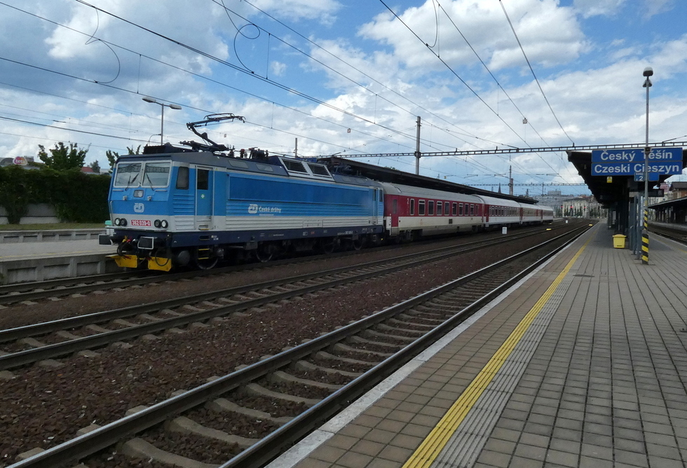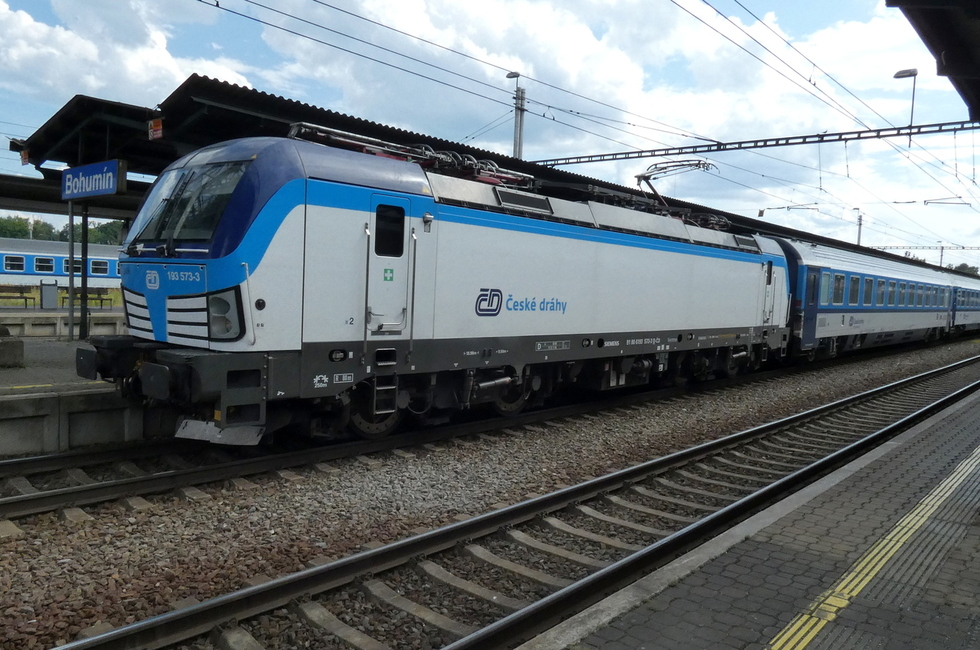 193-573 z składem pociągu EC Ostravan relacji Praha hl.n. – Žilina, 13.07.2025r. Bohumin.
