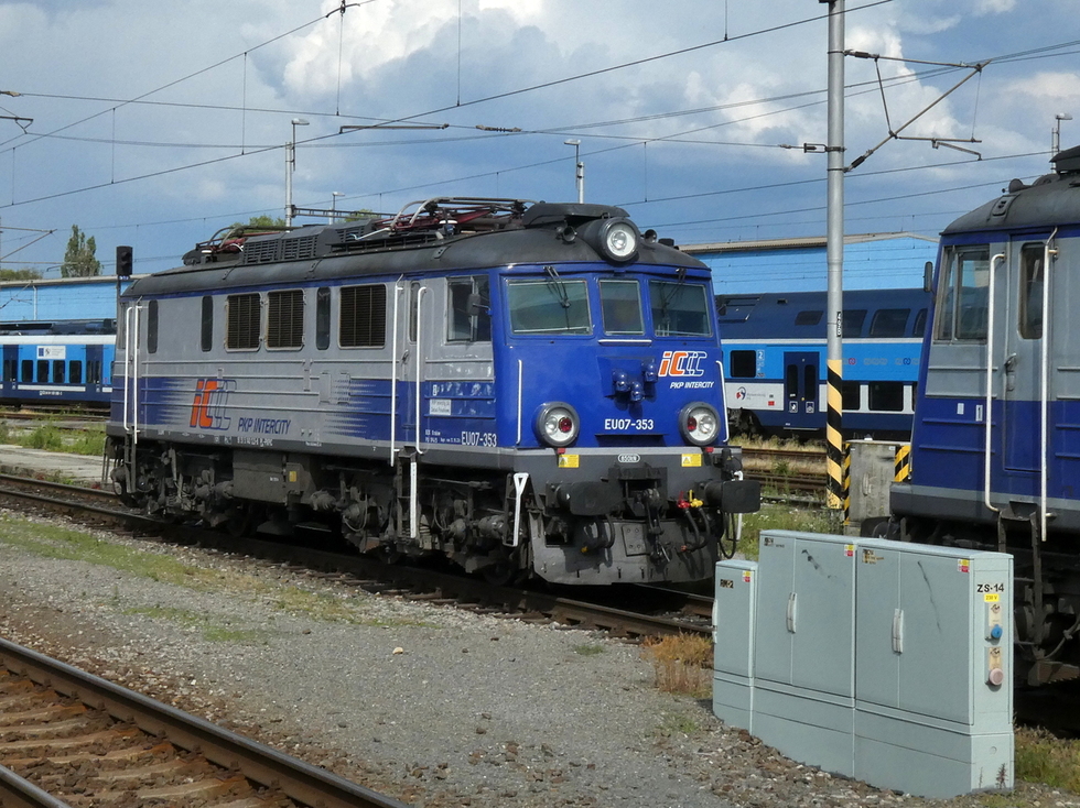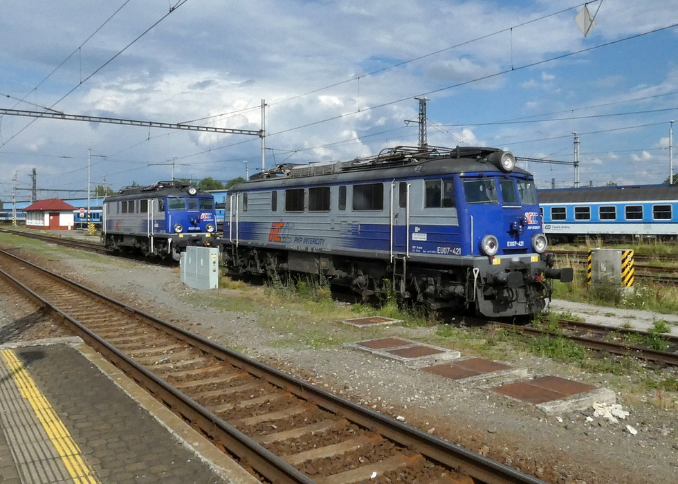 EP09-028 podstawia się pod skład pociągu EC Polonia relacji Wien Hbf. – Warszawa Wschodnia, 13.07.2025r. Bohumin.