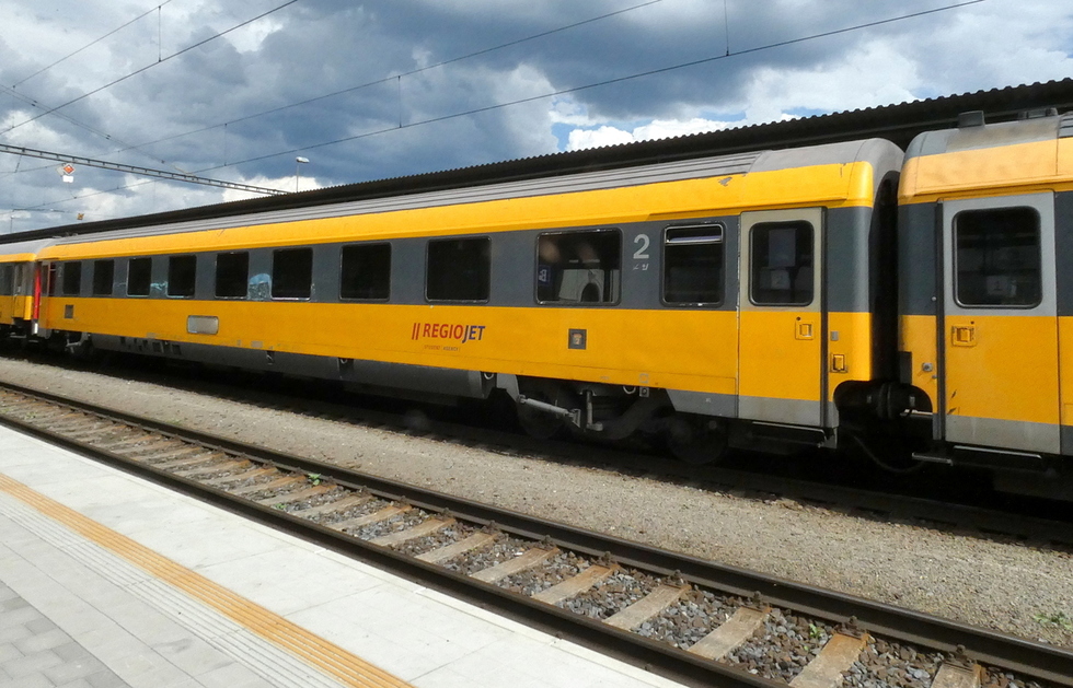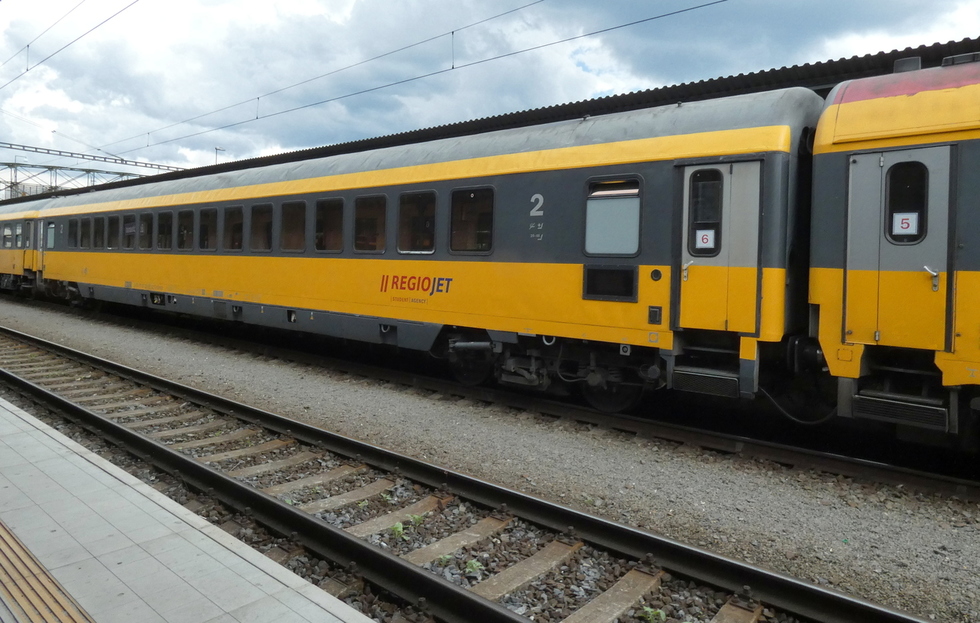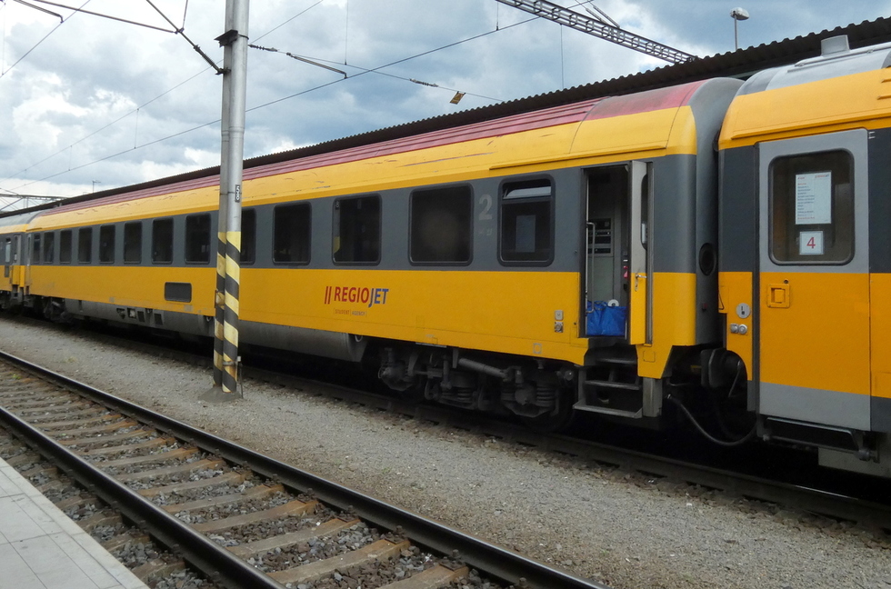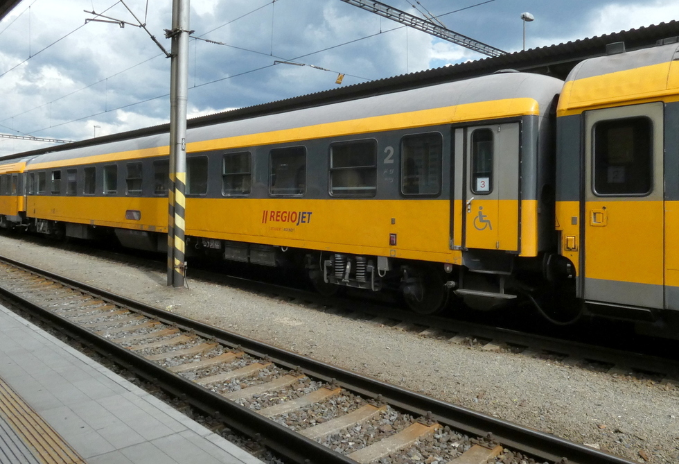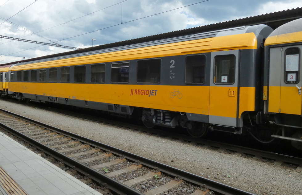 61 80 19-91 510-6 Avmz wagon pasażerski 2 klasy w składzie pociągu Regio Jet relacji Bohumin – Brno-Královo Pole, 13.07.2025r. Bohumin.