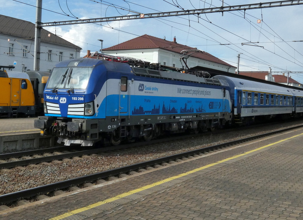 193-298 z składem pociągu EC Ostravan relacji Žilina – Praha hl.n. 13.07.2025r. Bohumin.